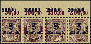 Aufdrucknennwert auf einem Bogenrand: Kennzeichnung auf einem Bogenrand um den schlecht sichtbaren Nennwert des Aufdrucks hervorzuheben |