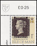 zweifarbige Briefmarke mit Anlagemarke "Oben" für das richtige Anlegen des Bogens mit grünem Unterdruck für den Bilddruck |