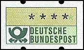 Automatenbriefmarke mit Typensatz-werteindruck: Automatenbriefmarke mit einem Werteindruck der aus Schriftmaterial (z. B. Ziffern und Zierstücke) gesetzt wurde