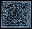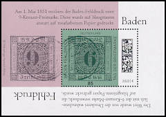 Badenfehldruck: Farbfehldruck einer 9 Kreuzer Briefmarke aus Baden 1851 ge-druckt auf blaugrünem anstatt rosa Papier |