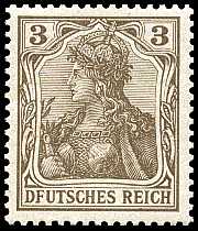 Dfutsches Reich: 3 Pfennig Freibriefmarke aus dem Deutschen Reich 1902 mit Platten-fehler fehlender Strich am ersten "E" von "DEUTSCHES" |