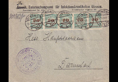 Dienstbriefmarke Zehn Pfennig Orange: 10 Pfennig Dienstbriefmarke aus dem Deut-schen Reich 1921 mit orangem Briefmarken-bilddruck |