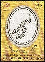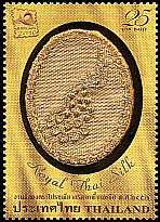 gleiche Briefmarken mit aufgeklebten bedruckten oder bestickten Seidengewebe |