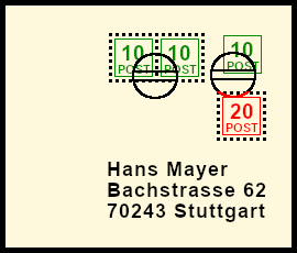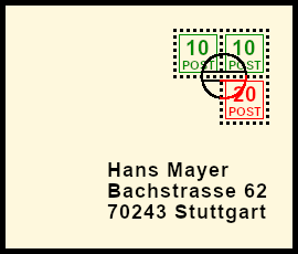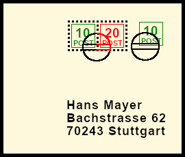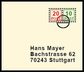 Supplemented Additional Franking: postal stationery with original franking deceitfult supplemented by an original or bogus postage stamp