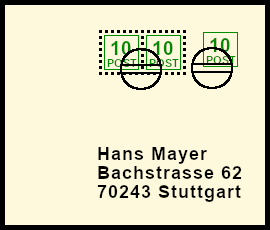 Partly Removed Franking: postal shipment with original franking deceitful partly eliminated