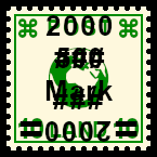kräftiger Zweitaufdruck: Briefmarke die als anfallender Ausschuss mit einem klaren jedoch farblich zu stark geratenem Zweitaufdruck versehen wurde |