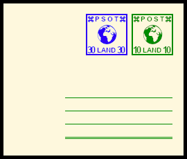 Blindwertstempelbeidruck: Ganzsache bei der durch einen Fehler der Wertstempelbeidruck farblos anstatt farbig ausgeführt wurde und nur die geprägten Konturen zu erken-nen sind