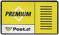 Premiumbriefmarke: Briefmarkengattung zum Frankieren einer Postsendung die auf dem gesamten Transportweg vorrangig behandelt wird |