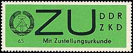 Dienstbriefmarke Zustellungsurkunde: Briefmarkengattung die von Behörden zum Frankieren ihrer Postsendungen mit Zustel-lungsurkunde verwendet werden |