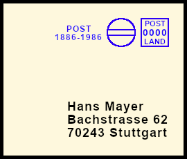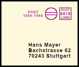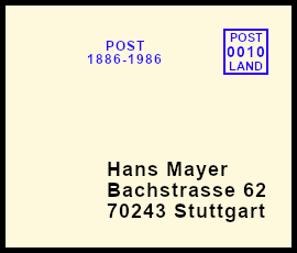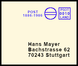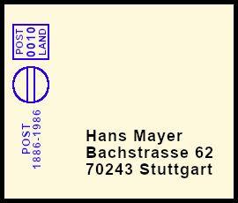 leichter Freistempel: Postsendung die durch einen Fehler mit einem klaren jedoch farblich zu schwach geratenem Freistempel versehen wurde |