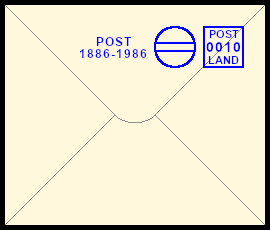 stehender Freistempel: Postsendung die durch einen Fehler mit einem senkrechten anstatt waagrechten Frei-stempel versehen wurde |