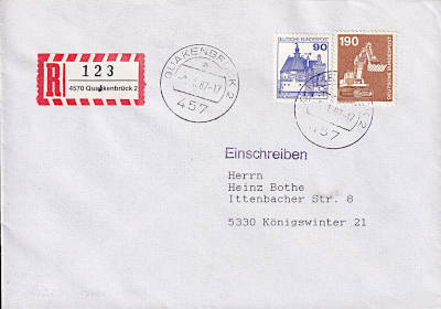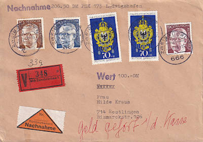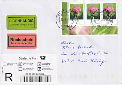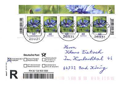 Artenmischfrankatur: Postsendung frankiert mit Frei- und Sonderpostwertzeichen |