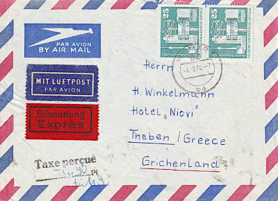 Gattungsmischfrankatur mit Dauer- und Luftpostbriefmarke |