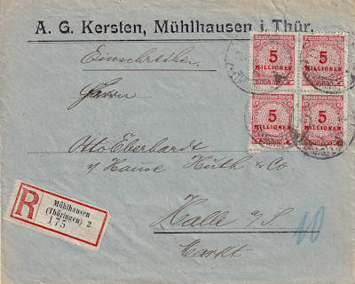 provisorische Frankatur: Postsendung die mit einer behelfsweise geschaffenen Brief-marke frankiert wurde |