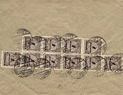 Briefmarkenmehrfachfrankatur: Post-sendung frankiert mit mehreren gleichen Briefmarken |