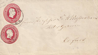 Wertstempelmehrfachfrankatur: Post-sendung frankiert mit mehreren gleichen Wertstempel |
