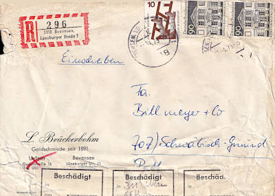 Postal Shipment Open On Three Sides: postal shipment that was opened on three sides e.g. to show the two-sided franking at a stamp exhibition