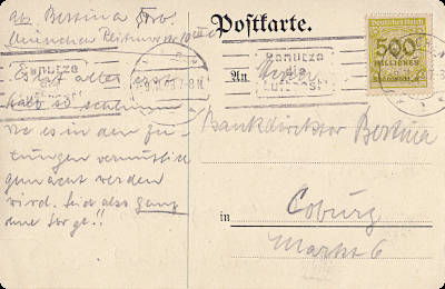 Postal Shipment With Resounding Print: printing ink bleeding through the paper of a postcard (e.g. oily print)