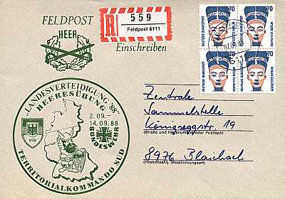 Maneuver Shipment: postal shipment that was transported during a military exercise using a temporarily set up field post facility |