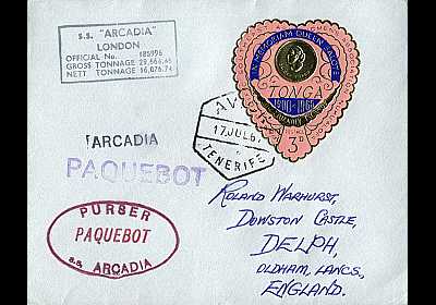 Paquebot: postal shipment posted by a crew member of a ship in port |
