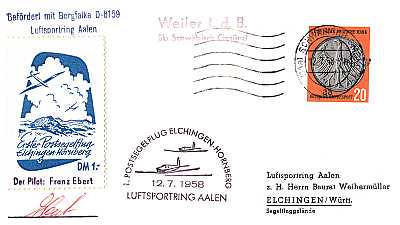 Special Mail Delivery With Glider: special tramsport of a postal shipment with a glider |