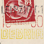 Bicolour Postmark: postage stamp with postmark in two colours using a split two-colour ink pad as intended style