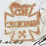 Single Rhomb Postmark: postmark with a border in oblique quadrangular shape with four equal length sides |