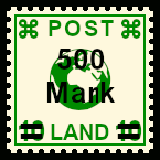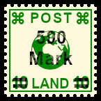 kräftiger Aufdruck: Briefmarke die durch eine Zufälligkeit mit einem klaren jedoch farblich zu stark geratenem Aufdruck versehen wurde |