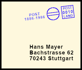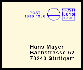 kräftiger Freistempel: Postsendung die durch eine Zufälligkeit mit einem klaren jedoch farblich zu stark geratenem Freistempel versehen wurde |
