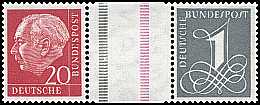 Zusammendruck mit Briefmarkenauf-druck über zwei Briefmarken: Zweier-streifen der mit einem gemeinsamen Brief-markenaufdruck versehen wurde |
